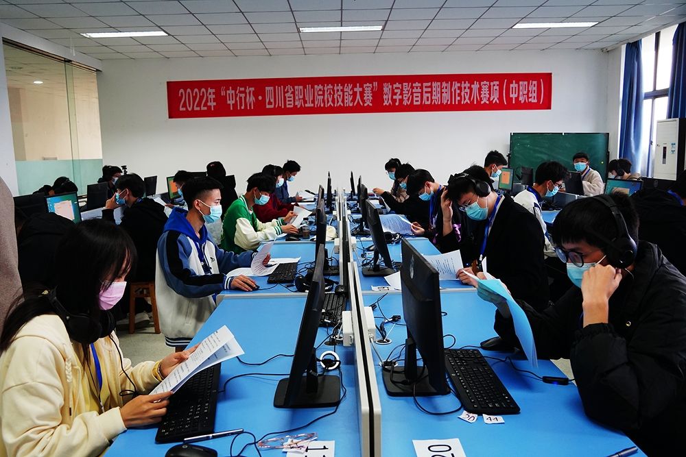 11月18日至29日,2022年“中行杯”四川省职业院校技能大赛“数字影音后期制作技术” (中职组)技能大赛在我校成功举行,来自全省各地市州的37支参赛队共57名选手参加了比赛。比赛由四川省教育厅主办,我校电信学院承办。