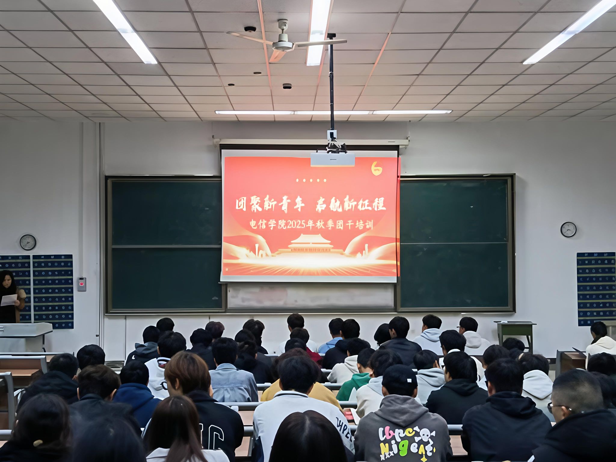 为加强对学院青年学生的思想政治引领,筑牢团干部思想根基与责任意识,2025年10月28日,电信学院2025年秋季共青团干部培训开班仪式暨首场培训在致知楼C102教室举行。本次培训以“团聚新青年,启航新征程”为主题,覆盖广泛,新生各班团支书、组织委员、宣传委员,学院团总支干部干事共计150余人参加,共同开启了一场聚焦时代精神、赋能青年成长的思想学习之旅。