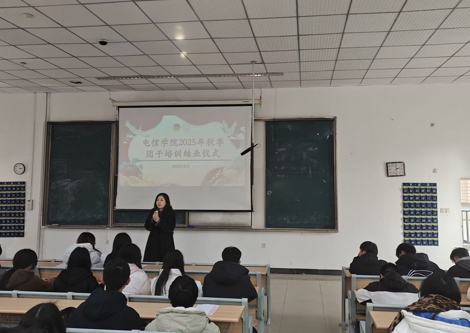 12月2日下午,电信学院2025年秋季团干培训结业典礼在南苑致知楼C201隆重举行。电信学院党总支副书记兼团总支书记张亚茹、专职辅导员樊璠出席,与全体参训学员共同见证结业时刻。