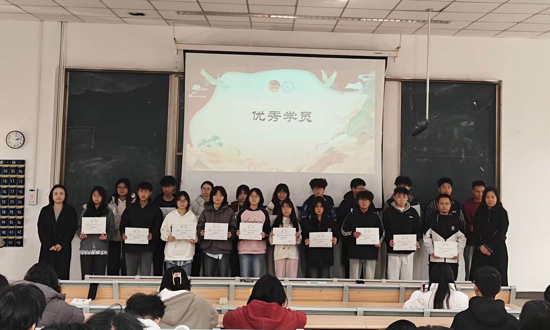 本期团干培训历时五周,聚焦“发扬斗争精神,提高斗争本领”、“新生寝室长及宿舍‘6S’建设专题培训”、“团日活动流程规范”、“大学生心理健康教育”以及“观看红色电影实践活动”五大主题展开。大一各班班长、团支书、组织委员、团总支学生会干事、寝室长、心理委员等200余名学生骨干参加。经培训与综合考核,最终评选出21名"优秀学员"。张亚茹书记和樊璠老师为"优秀学员"颁发了荣誉证书。