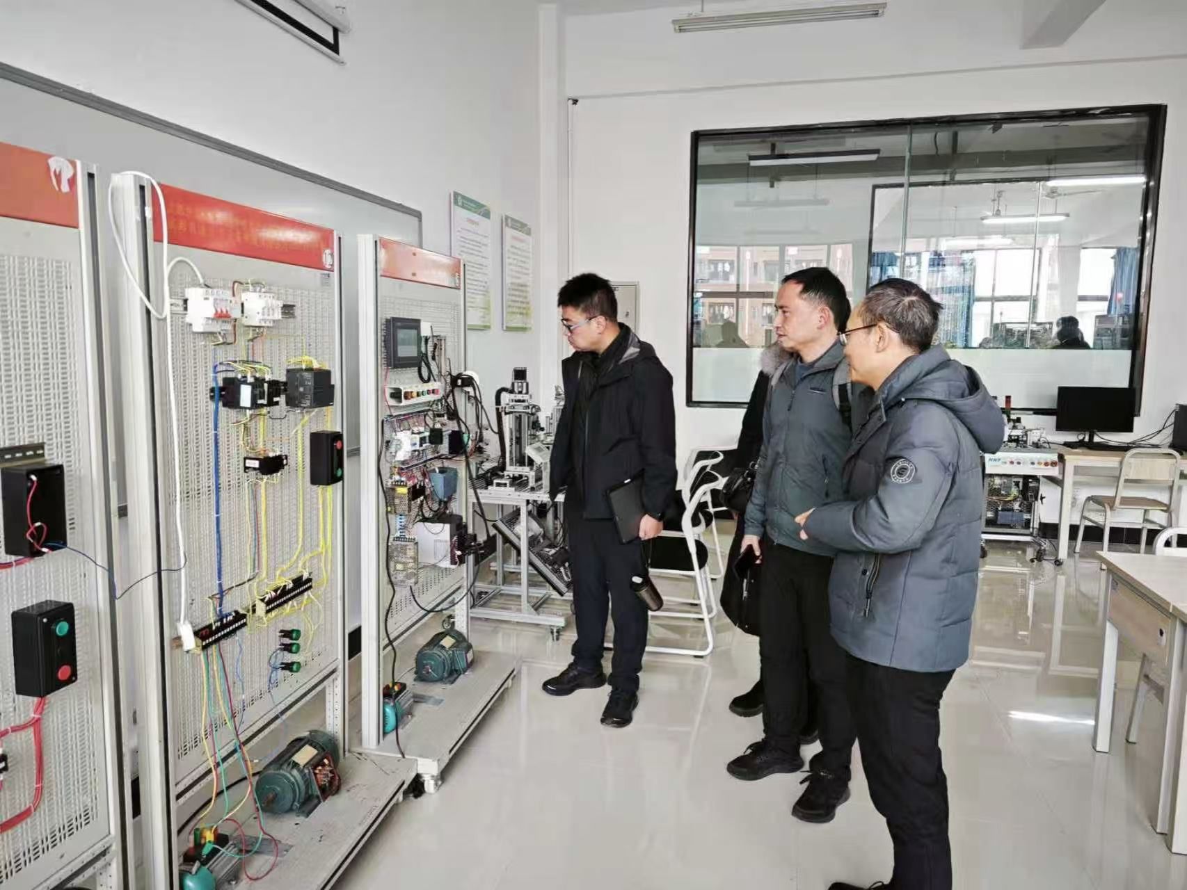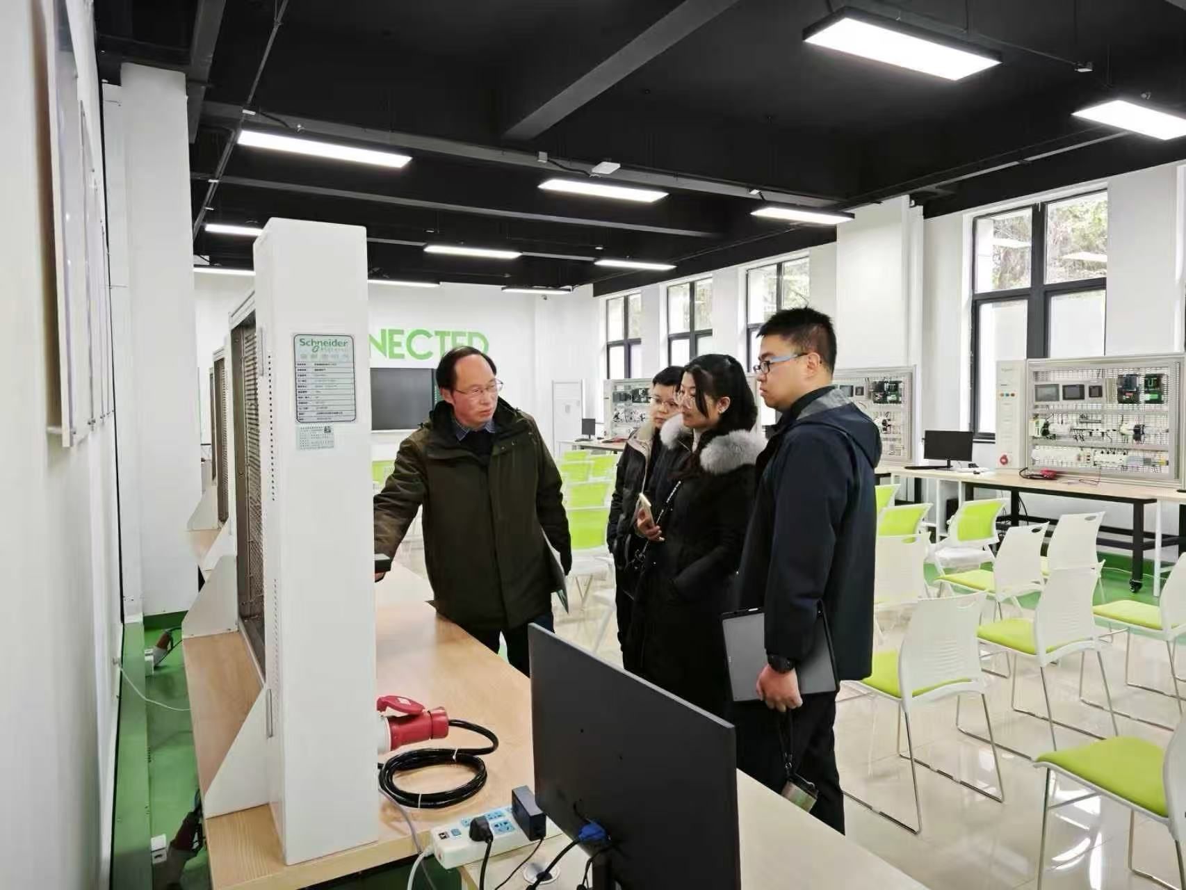 会后,来访领导及老师实地参观了我院实训中心及法国施耐德电气绿色低碳技术应用中心,详细了解我校在实训教学、技术应用与产业对接方面的建设成效,并对相关实践平台的建设水平给予高度认可。